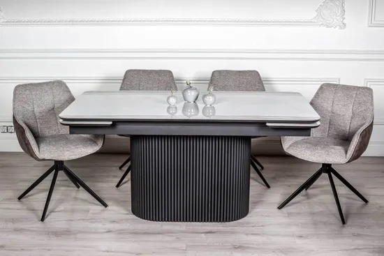 Комплект Стол обеденный раздвижной RELAX -160 (224) + 4 стула TWIST. поворотно-возвратный 180гр,, бежевый/коричневый / Черный