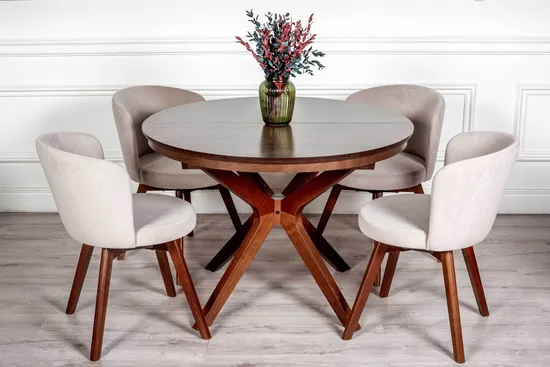 Комплект Стол VERONA 1100 CV с круглой столешницей + 4 стула СИТИ-ВР (вращающийся) с мягкой спинкой / Американский орех