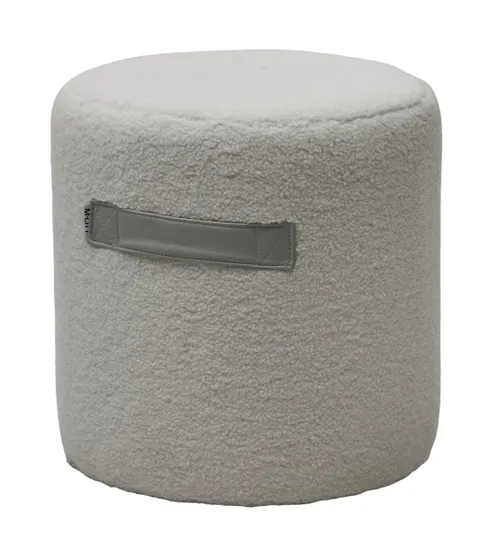 Пуф обит мягкой тканью, напоминающую шерсть молодого ягненка. Ручки из экокожи.