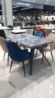- двухсторонняя торцевая система раскладывания, две независимые вставки по краям по 40 см позволяют увеличить длину столешницы на 180 или 220 см при необходимости; глянцевая керамическая столешница толщиной 11 мм, не впитывает загрязнения, термостойкая;