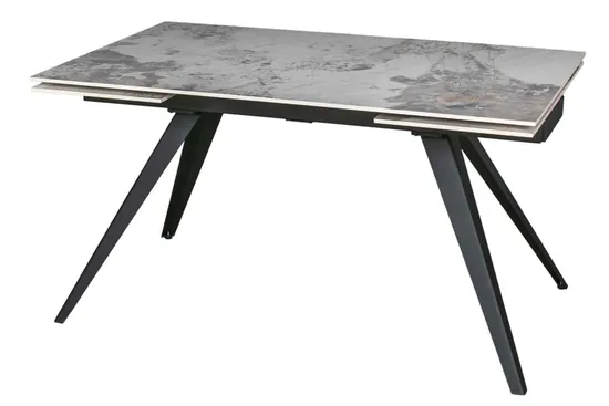 - двухсторонняя торцевая система раскладывания, две независимые вставки по краям по 40 см позволяют увеличить длину столешницы на 180 или 220 см при необходимости; глянцевая керамическая столешница толщиной 11 мм, не впитывает загрязнения, термостойкая;