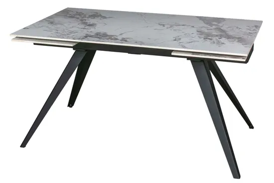 - двухсторонняя торцевая система раскладывания, две независимые вставки по краям по 40 см позволяют увеличить длину столешницы на 180 или 220 см при необходимости; глянцевая керамическая столешница толщиной 11 мм, не впитывает загрязнения, термостойкая;