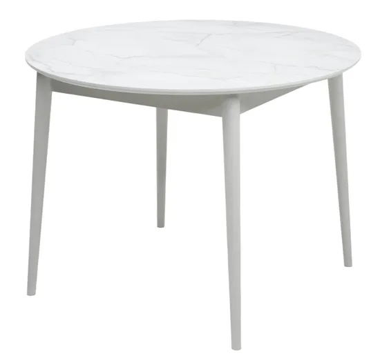 Стол BOLERO в цвете Жемчужный Перито (Белый Мрамор) на белом каркасе