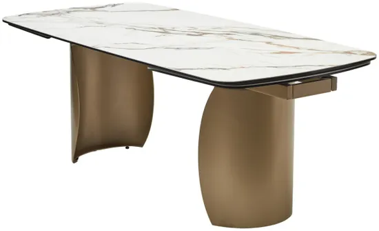 - двухсторонняя торцевая система раскладывания, две независимые вставки по 50 см позволяют увеличить длину столешницы на 250 или 300 см при необходимости;