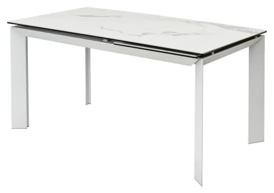 Стол CREMONA с глянцевой керамической столешницей "белый мрамор" на белом каркасе