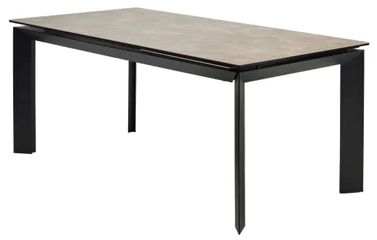 - основание стола - металл, цвет - черный, ножки стола расположены по углам столешницы под углом;