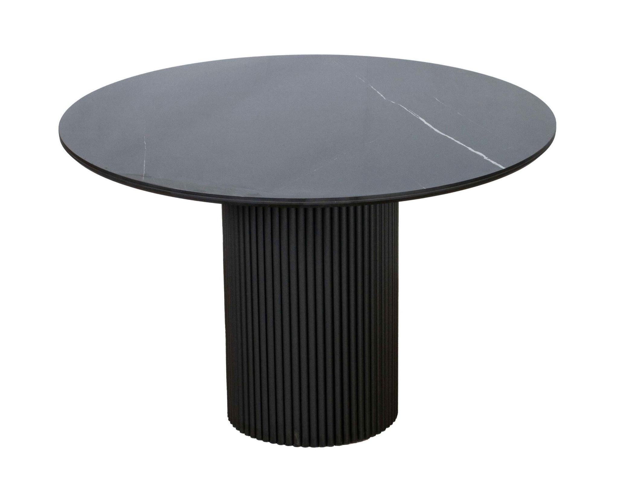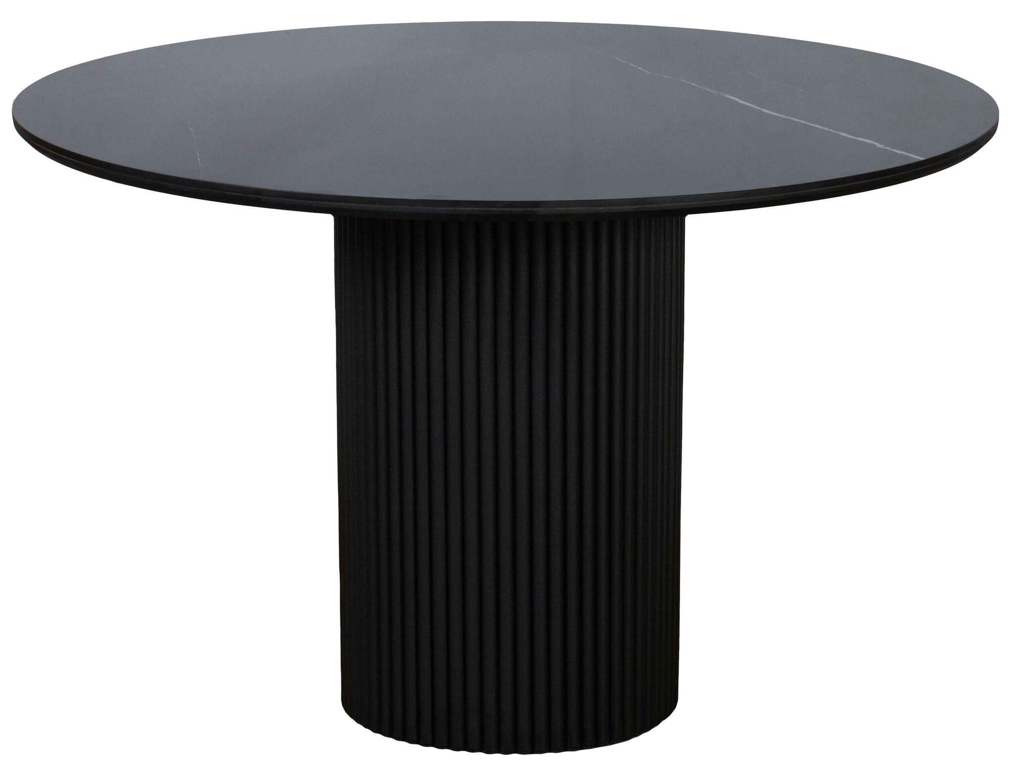 Стол DUBAI с глянцевой столешницей из монолитной керамики Portrait Black (Черный глянец) имеет диаметр столешницы 100 см