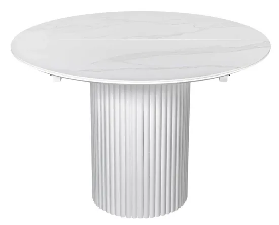 Стол DUBAI 110 с глянцевой столешницей из керамики имеет диаметр столешницы в сложенном виде 110 см и в разложенном 142 см