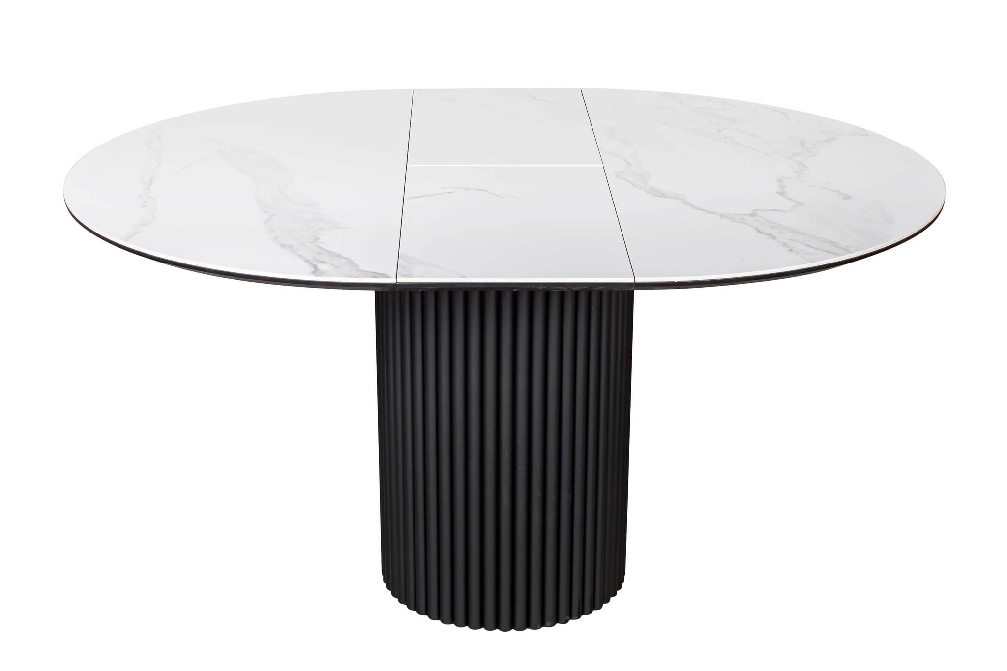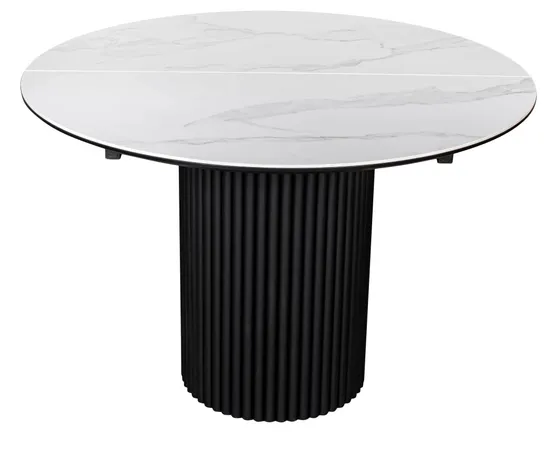 Стол DUBAI 110 с глянцевой столешницей из керамики имеет диаметр столешницы в сложенном виде 110 см и в разложенном 142 см