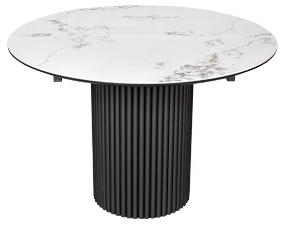 Стол DUBAI 110 с глянцевой столешницей из керамики имеет диаметр столешницы в сложенном виде 110 см и в разложенном 142 см