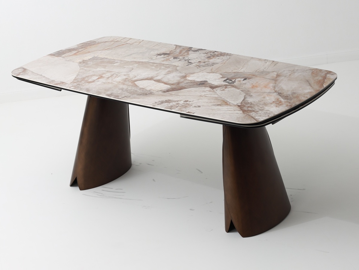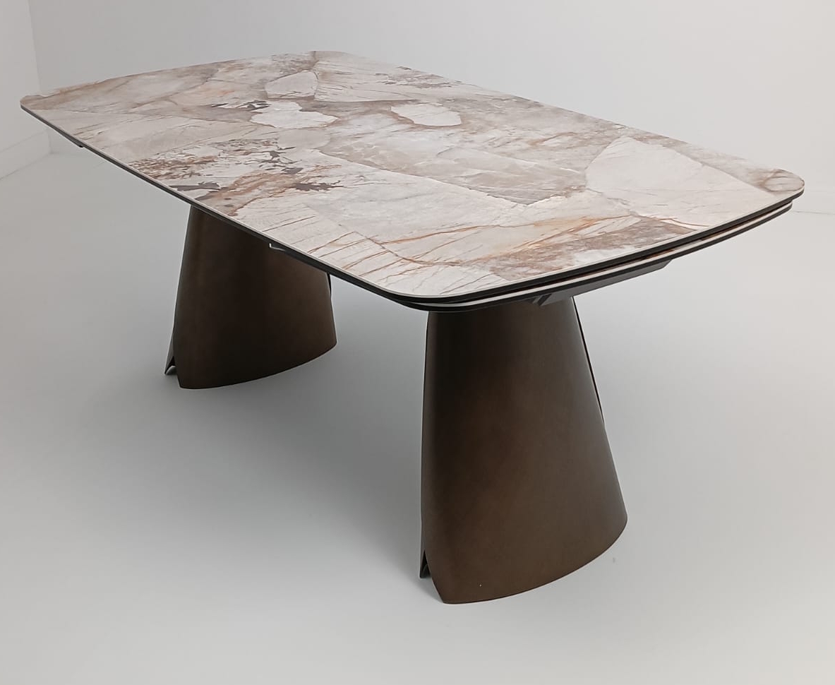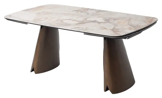 - глянцевая керамика в цвете бело-коричневый мрамор, толщина столешницы 14 мм (4 мм керамика + 10 мм стекло), не царапается, не впитывает загрязнения, термостойкая;