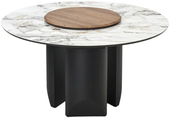 Стол КОЛИЗЕЙ 140 ARCTIC OCEAN круглый с поворотной вставкой, цвет белый мрамор