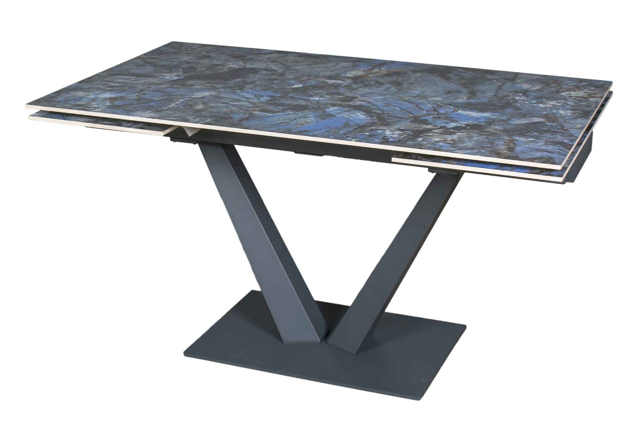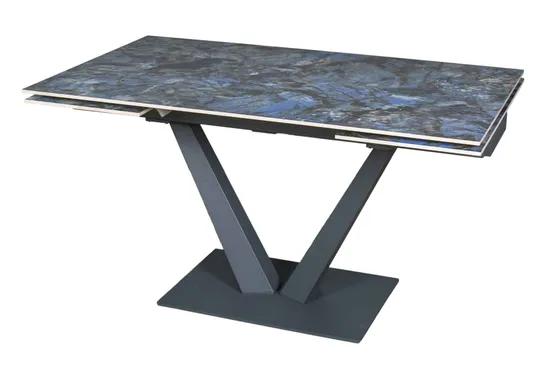 Стол "МАЛИБУ" 140-220, керамика Lemurian Blue глянцевый, опоры серый муар