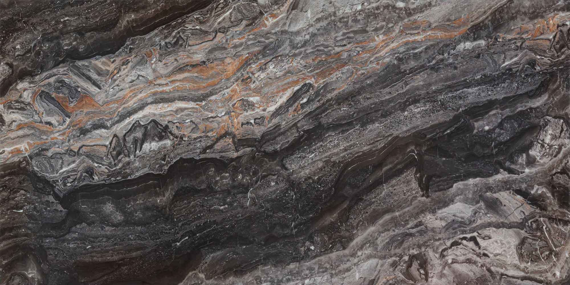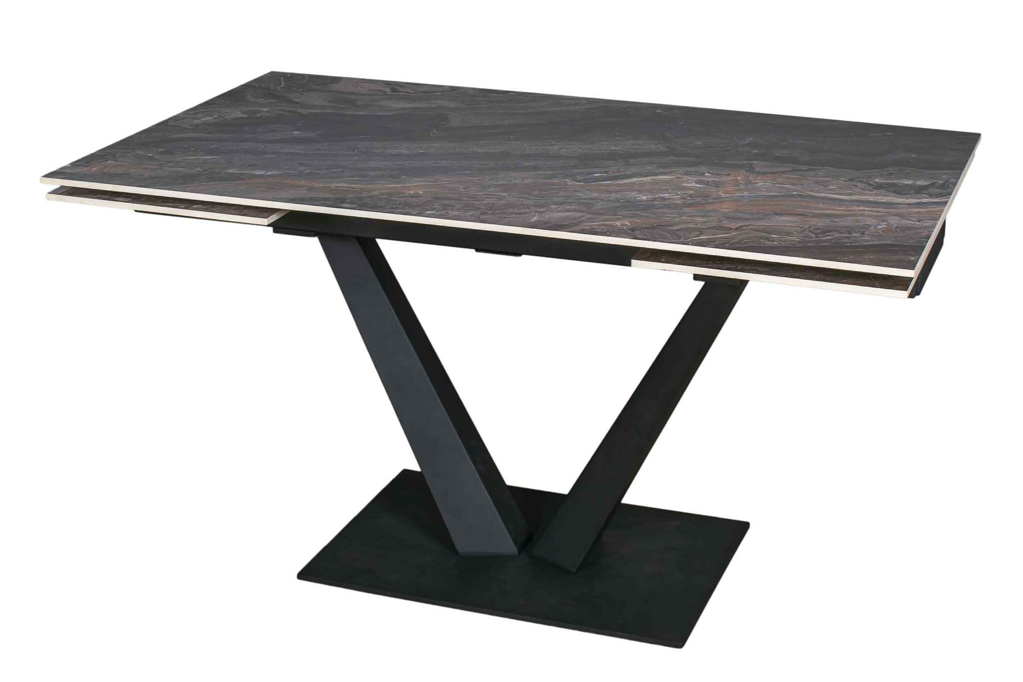 Стол "МАЛИБУ" 140-220, керамика Venice Grey глянцевый, опоры черный муар