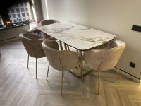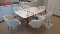 - итальянская матовая керамика в цвете белый мрамор с отражающими свет прожилками, толщина столешницы 13 мм (3 мм керамика + 10 мм стекло), не царапается, не впитывает загрязнения, термостойкая;
