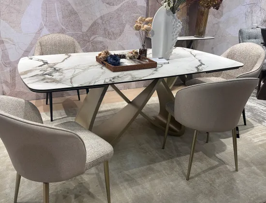 Стол дизайнерский PALACIO 180 с матовой керамической столешницей контрастный мрамор