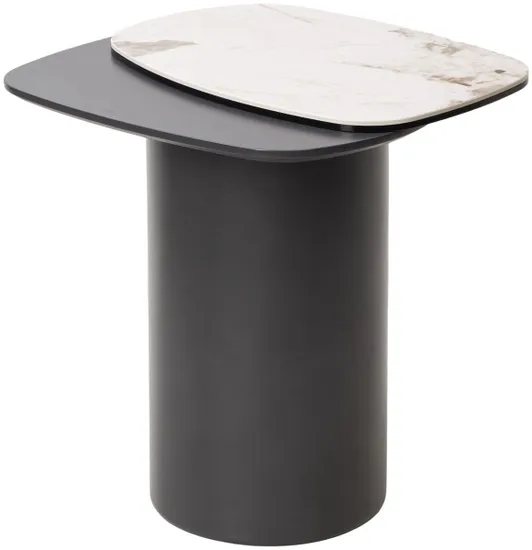 Стол кофейный Nikolas с глянцевой керамической поверхностью. Комбинированная столешница: 1-ая столешница - глянцевая керамика на стекле, толщина 14 мм (6 мм керамика + 8 мм закаленное стекло), 2-ая столешница - МДФ, окрашенный в серый цвет. Основание стола – окрашенный МДФ, цвет – темно-серый. Упакован в 2 коробки.