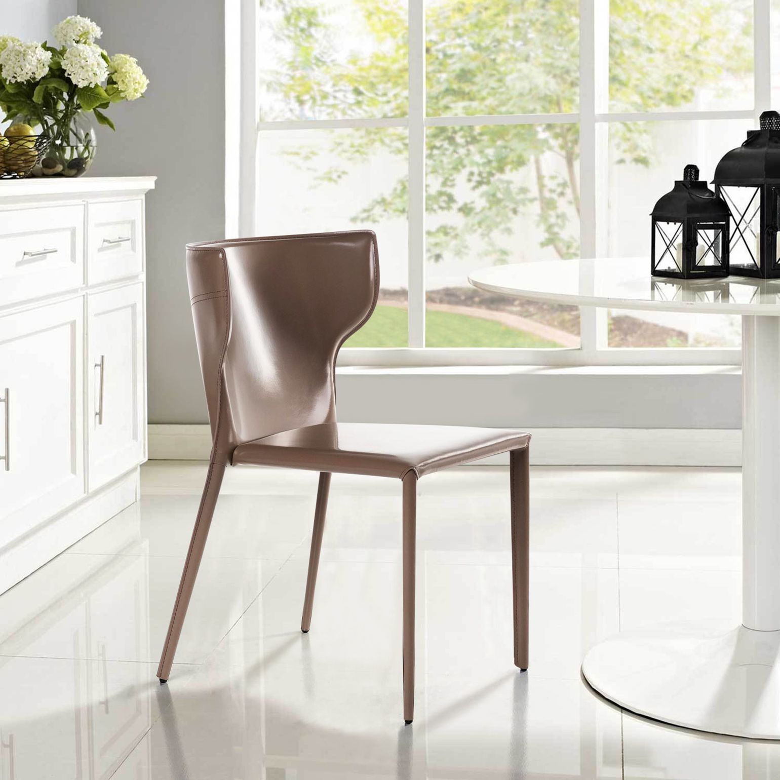 Изюминка стула Austin – невероятно тонкие металлические ножки, излишне скошенные назад, как часть дизайнерской задумки. Ножки обиты регенерированной кожей, на них предусмотрены специальные пластиковые накладки, которые придают стулу дополнительную устойчивость и защищают пол от царапин.